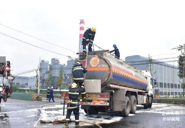 12時30分,油罐車剩余油料倒灌完畢,事故車輛在一輛消防車的護送下安全駛離現(xiàn)場。